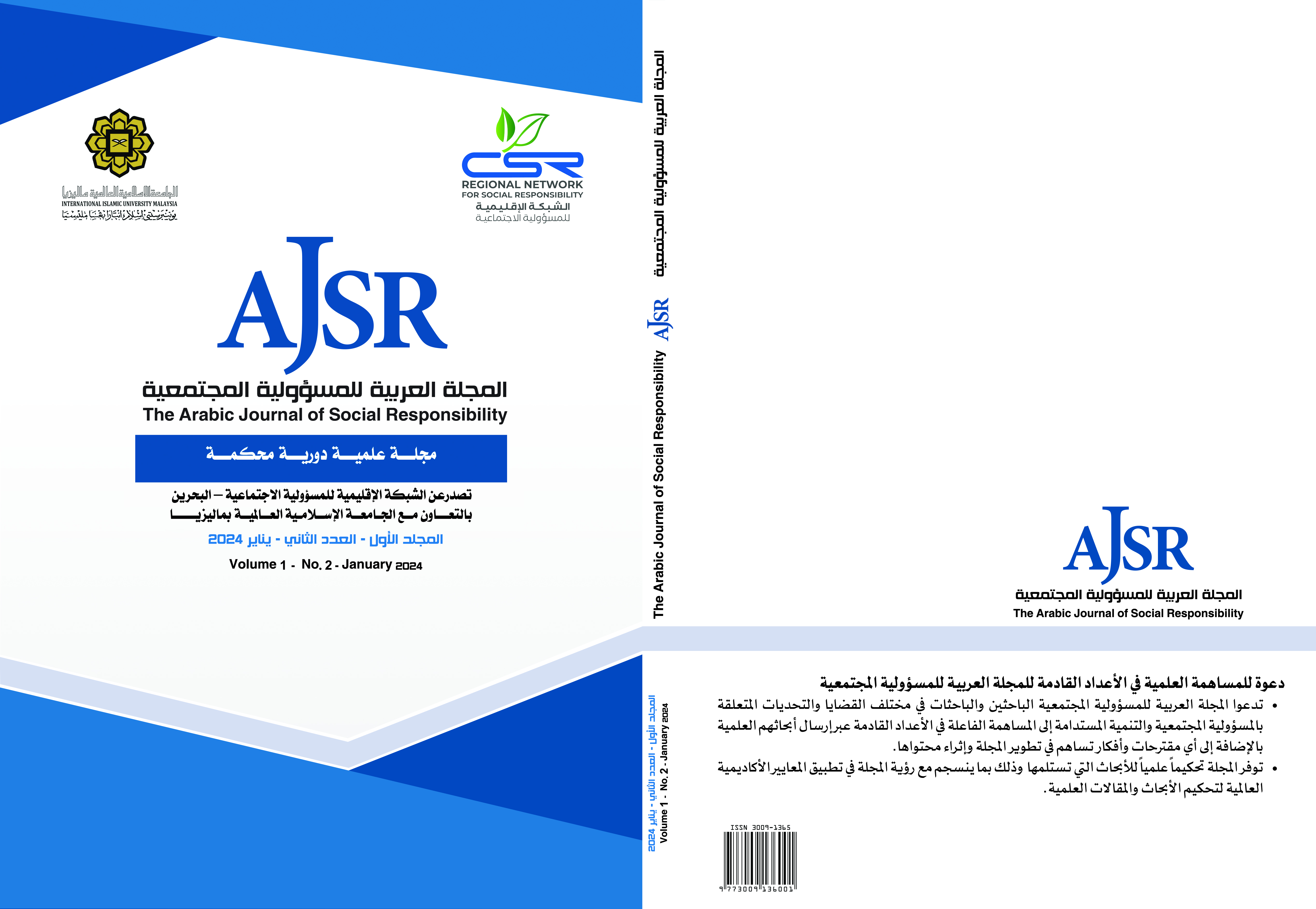 مجلد 3 عدد الثالث (2025)بحمد الله وتوفيقه يصدر العدد الثالث من "المجلة العربية للمسؤولية المجتمعية"، التي تنشرها الشبكة الإقليمية للمسؤولية المجتمعية في العالم العربي، ومكتبها الإقليمي في مملكة البحرين، والمعهد العالمي لوحدة المسلمين بالجامعة الإسلامية العالمية في مملكة ماليزيا.